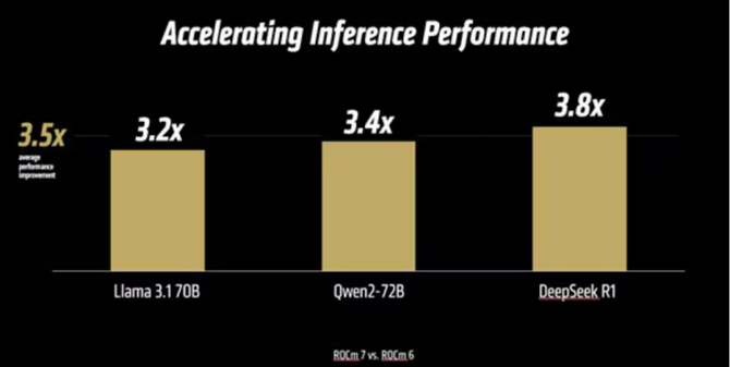 图 1 展示了 ROCm 7 在 AI 推理性能方面的显著提升¹。